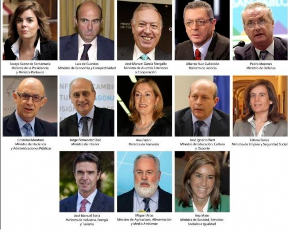 El nuevo gobierno de España que ha presentado Mariano Rajoy merece una «división de opiniones» como en el toreo.. Por un lado, la parte económica, queda en buenas manos. con Guindos, Montoro,Báñez y Nadal desde la Oficina Económica que lo harán bien porque son gente solvente y capaz.