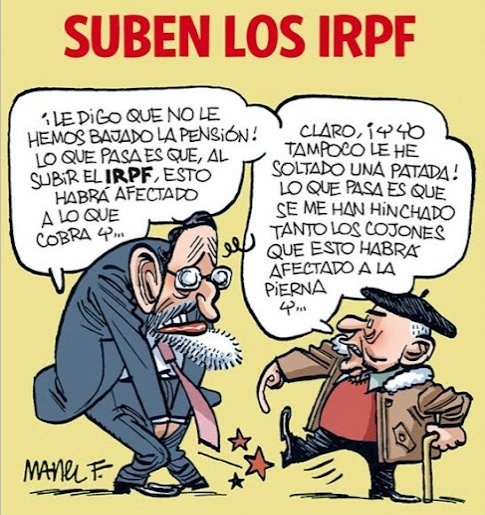 Explíqueme Vd. porqué hay que “freír al 99% de la población española a impuestos y tasas de todo tipo”, cuando aproximadamente 1% de los ricos de verdad, NO PAGAN LO QUE DEBIERAN y cual es la razón de que el IRPF «castigue a las pensiones» de forma inmisericorde. Un día «se va a equivocar un jubilado» y a «su jefe» le va a pasar esto.