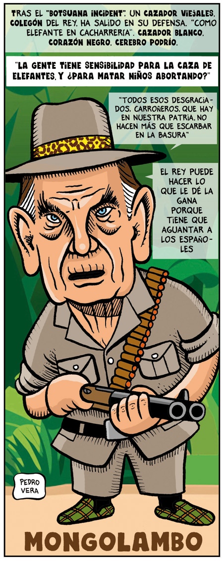 DOS.- Cazar será “un arte” para el señor Sánchez Mariño pero yo, en todos los videos de caza que veo percibo que los elefantes “son matados con armas muy seguras y de extrema potencia”. En cuanto a que el Rey “no gasta dinero del erario público para pagar sus viajes” tan solo decir que Rann Safaris cobra por la caza de un elefante 46.085 dólares durante 14 días, que son unos 35.000 euros. El gasto de viaje, estancia y matar al animal “quizá se lo paguen” al Rey, pero los salarios y gastos de material de los escoltas y el doctor de la Casa Real que le acompañan no creo que estuviesen incluidos “en el regalo”, sin contar el “gasto sanitario” que nos ha ocasionado Don Juan Carlos, que no se habría producido si no anduviese a esas horas pensando en “matar animales” (o “haciendo otras cosas”) mientras «su pueblo» se levanta a las mismas horas pero para ganarse “un sueldo de mierda”.