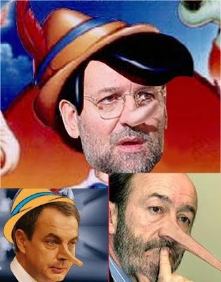 Esta analogía ha dado pie a esta serie de imágenes que circulan por la red satirizando a los “políticos mentirosos”. La primera representa a Zapatero cuya sarta de mentiras fue tan grande que hasta se ha editado un libro dedicado a las mismas