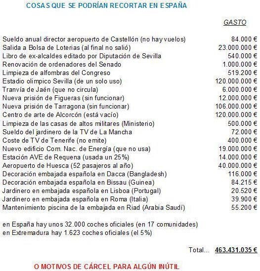 Despues de su «mayoría absoluta» en las Elecciones Generales del pasado 20 de noviembre, el PP ha subido el IRPF, el IBI, el IVA, ha abaratado el despido, recortado derechos de los trabajadores con la reforma laboral, impuesto el copago farmacéutico a los pensionistas y perdonado impuestos a los evasores fiscales, pero en sus recortes «se ha olvidado algo«. Aquí se lo pongo Don Mariano.