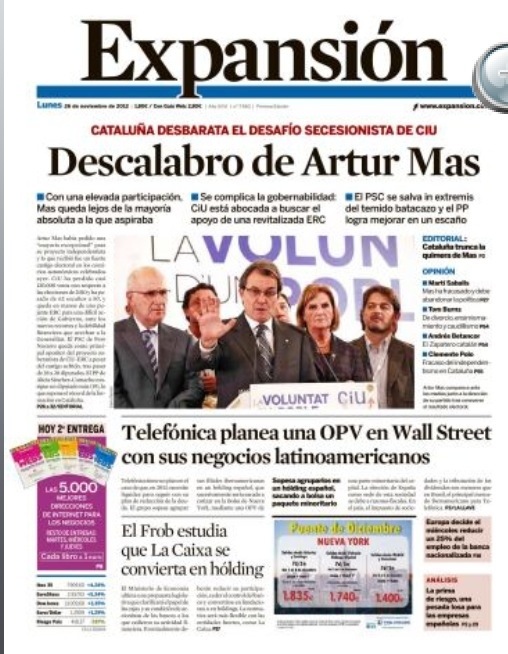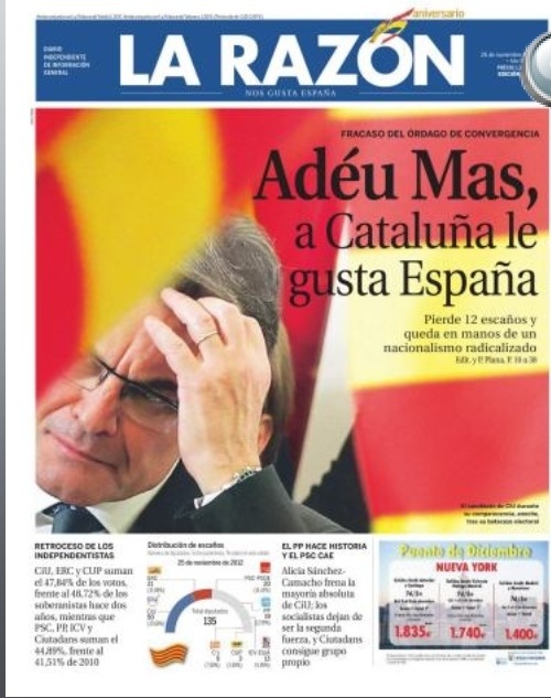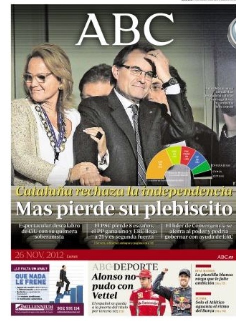 La noticia de hoy en toda la prensa ha sido precisamente «este fracaso del señor Mas en Cataluña». Los titulares son muy explícitos