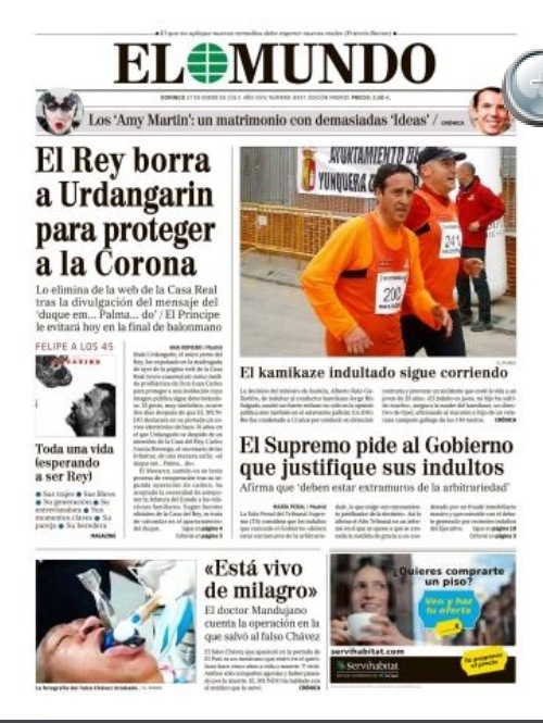 La portada del diario «El Mundo» de hoy domingo 27 de Enero pública la noticia titulada: «El Supremo pide al Gobierno que justifique sus indultos» indicando que la Sala Penal del Tribunal Supremo (TS) considera que los indultos que concede el Gobierno «deben estar extramuros de la arbitrariedad», lo que exige «un razonamiento justificador de la decisión».