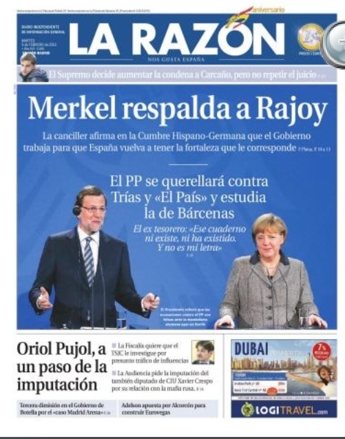 ¿Por qué brindaba? ¿Acaso porque han pactado entre todos «matar a los mensajeros» con querellas a diarios y personas? ¿ Porque cabe la posibilidad de que el PP al final «no se querelle contra él«? De hecho el titular de «La Razón» de hoy dice: «El PP se querellará contra Trías y «El Pais» y estudia la de Bárcenas»