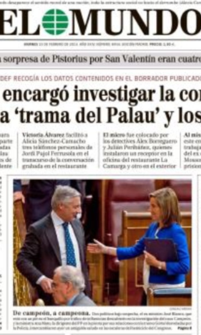 Hoy el diario «El Mundo» publica una foto impagable en la que se ve a Doña Ana Mato saludando al ex ministro de Fomento, Don José Blanco, con un titular demoledor, «De campeón, a campeona«. Así, Pedrojota mata «dos pájaros de un tiro«.