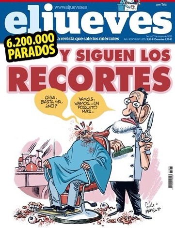 El resultado. Otra TREMENDA MENTIRA. Mejor tomárselo con sentido del humor como hace la revista «El Jueves» en su número 1875 del 1 al 7 de mayo del 2013 con el lema: «6.200.000 parados y siguen los recortes»