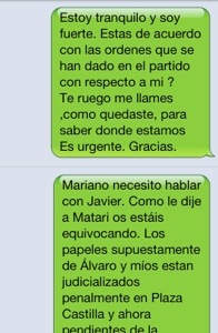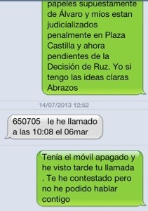 En el mismo se muestran diez capturas de pantalla de un móvil (que presumo debe de pertenecer a señor Barcenas) y que prueba que el ex tesorero y Rajoy mantuvieron un «contacto directo y permanente» a través de intercambios de SMS entre mayo de 2011 y marzo de 2013.