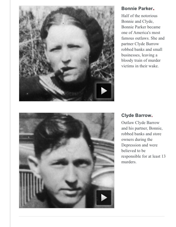 Pero nada más lejos de la realidad, porque tan sólo podemos comparar a nuestra real pareja con los «inicios» de la otra de 1932 cuando con la gran depresión estadounidense empezaron como «pequeños ladrones«. Luego pasaron de «ladronzuelos» a «asaltantes y asesinos» ( se les imputan al menos 13 asesinatos) y terminaron merecidamente muertos en un retén policial en Louisiana el 23 de mayo de 1934.