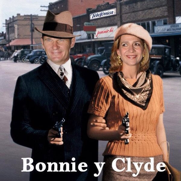 Bonnie Parker y Clyde Barrow fueron una pareja muy famosa de gángster de la historia y ahora los especialista en Photoshop se empeñan en «comparar a aquella pareja de canallas» con la formada por ese ilustre matrimonio de la Infanta de España doña Cristina Federica Victoria Antonia de la Santísima Trinidad de Borbón y Grecia y el ex-jugador de balonmano llamado don Iñaki Urdangarín, Liebaert, llamándolos «los nuevos Bonnie and Clyde» españoles,