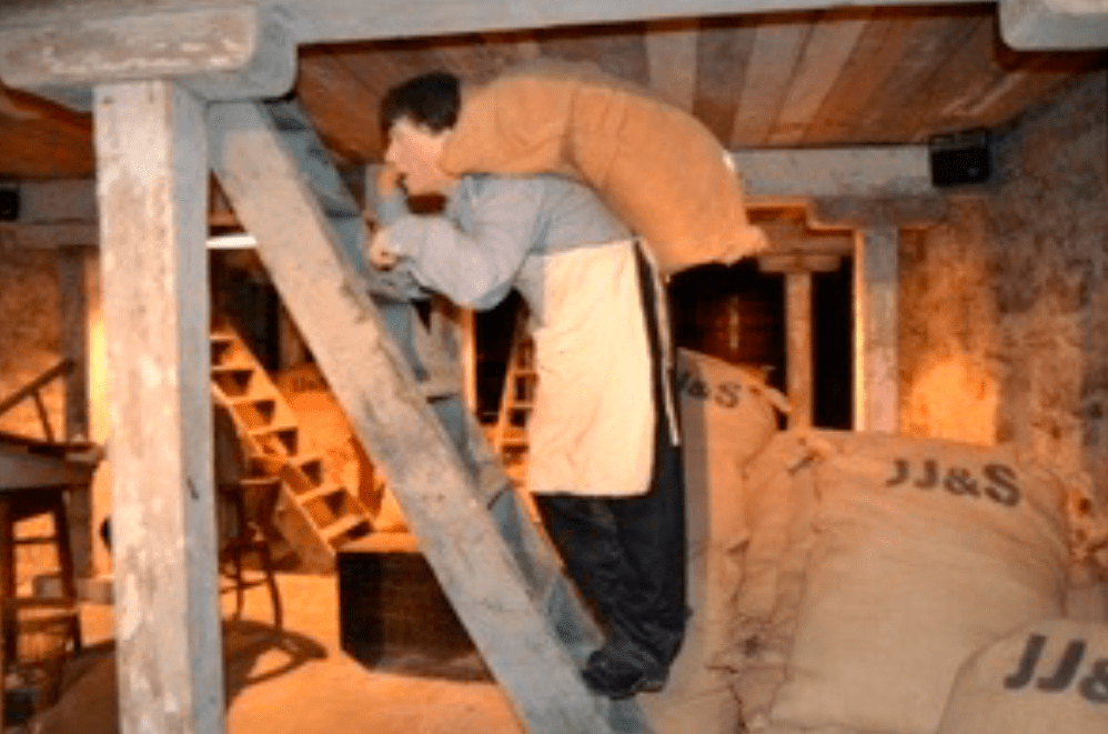 Aunque el whiskey necesita muchos años de elaboración y maduración, en realidad sus ingredientes principales se reducen a tres: la excelente agua de Irlanda y la cebada malteada y sin maltear. La destilería compraba toda la cebada en el periodo de cosecha y los granjeros la transportaban con caballos y carros. Antes de que se implantaran el uso de palancas y poleas los hombres tenían que transportar aquellos sacos de grano cargándoselos a sus espaldas aunque algunos llegaban a alcanzar el peso de 100 kg (224 lb).