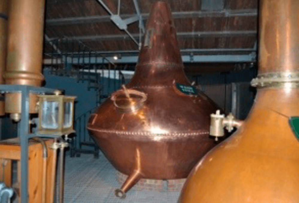 Es en la destilación donde el whiskey se diferenciaba esencialmente de su homónimo escocés. La casa de destilado constituía el corazón mismo de la destilería puesto que allí es donde se producía el arte de «separar el alcohol y el agua«. En los tradicionales «Pot Still» hechos de cobre y de considerable tamaño, se calentaba el «wash» y se condensaba el alcohol y el whiskey se obtenía después de tres destilaciones distintas (a diferencia del bourbon americano que sólo se destila una vez y de la mayor parte de los whiskeys ingleses que se destilan dos). La destilación se hacía en alambiques diferentes y con cada una se iba incrementando la calidad y la suavidad del producto.
