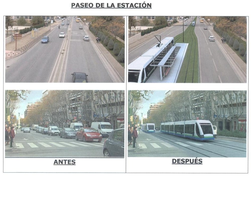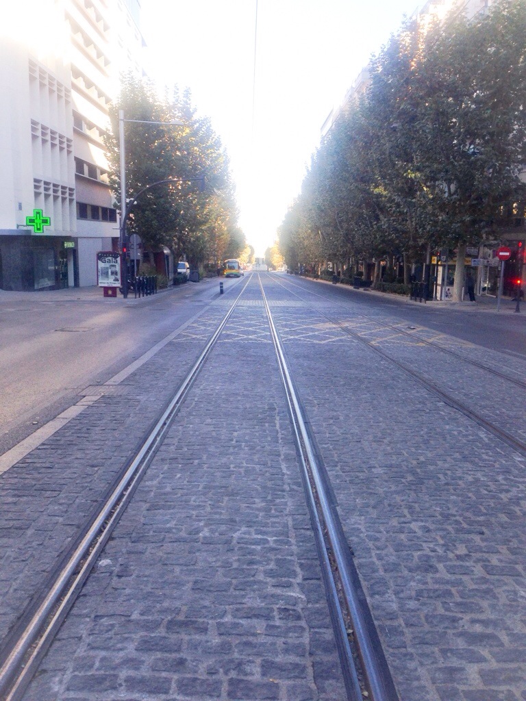Véase esta imagen del Paseo de la Estación de Jaén, la principal arteria de la ciudad y como el trazado tranviario lo ha dejado