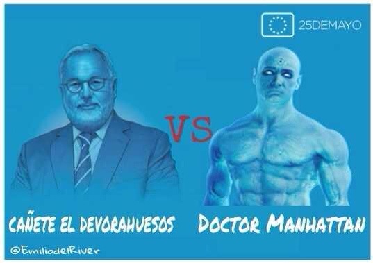Y a don Miguel yo no lo veo como un candidato capaz de rescatar al PP del «peligro de la abstención de sus votantes» y después de verlo en su cartel electoral con ese «filtro azul» en donde se pretende, supuestamente aumentar la notoriedad del candidato, destacándolo sobre este color, diré que para mí esta imagen en vez de darme la confianza del color azul del agua, del cielo, de la esperanza y del futuro, más bien me recuerda a la del «Doctor Manhattan«, aquel personaje ficticio de la serie «Watchmen» que poco a poco se iba alejando de la humanidad y perdiendo el interés en los asuntos humanos convirtiéndose en un ser distante y nihilista al estilo del übermensch de Nietzsche, cuyas acciones se hallaban más allá del bien y del mal,