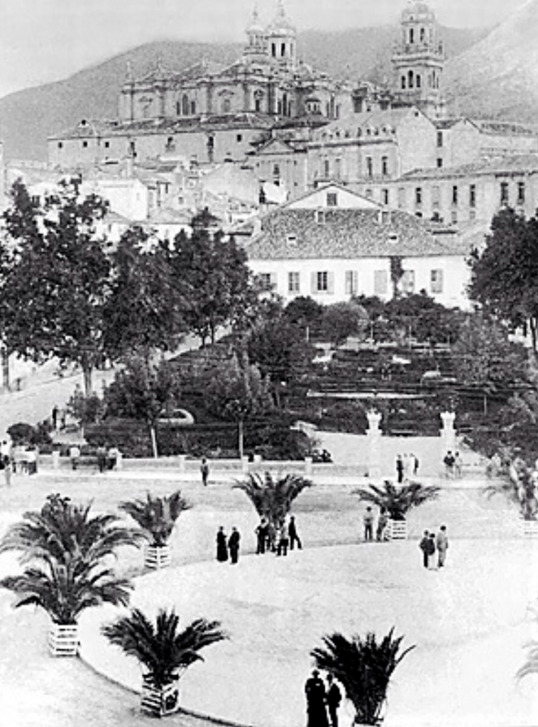 Más adelante en esta gran plaza se construyeron unos «Jardinillos» que pueden verse en esta foto de 1912, del fotógrafo don Manuel Alcázar