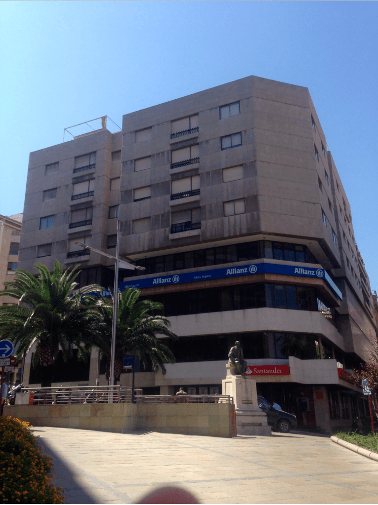 Y así es como, la piqueta, obediente a los intereses económicos términó con aquel bello teatro y aquella hermosa plaza de Jaén, por eso voy hoy a terminar mi «túnel del tiempo» acordándome de aquella canción de Joaquín Sabina que se titulaba: «Y nos dieron las diez» y de aquella parte de la misma en la que dice: «llegó otro verano y en lugar de tu bar me encontré una sucursal del Banco Hispano Americano«. En mi caso, voy a cambiar la palabra: «bar» por la de: «Teatro Cervantes» y la del banco en cuestión por el que hoy ocupa su sitio que es el «Banco de Santander» . La Plaza de Jose Antonio hoy se llama «de la Constitución» y en el año 2008, volvió a reformarse incluyendo un parking, una zona peatonal y una fuente central en donde se ha colocado un monumento alegórico a la alfarería, obra del ubetense Paco Tito. Cierto que está «menos fea» que aquella horrorosa primera reforma que le hicieron a finales de los años 50 y que también han vuelto a colocar allí la estatua de don Bernabé Soriano desde su triste ubicación de La Alameda, pero aún así, la nueva plaza no se puede comparar con lo que era la primitiva y hermosa «plaza de las Palmeras»