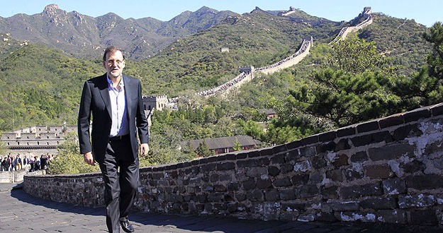 Don Mariano, veo que aparece usted en la foto de la noticia posando junto a la gran muralla, que se afirma que es el único objeto hecho por el hombre que es visible desde el espacio pero me temo que se encuentra usted tan lejos de la realidad como está de España, ese lejano país donde ahora se encuentra y si su «miopía visual » fuera tan grande como su «miopía política » creo que le estará costando bastante trabajo distinguir ese monumento.