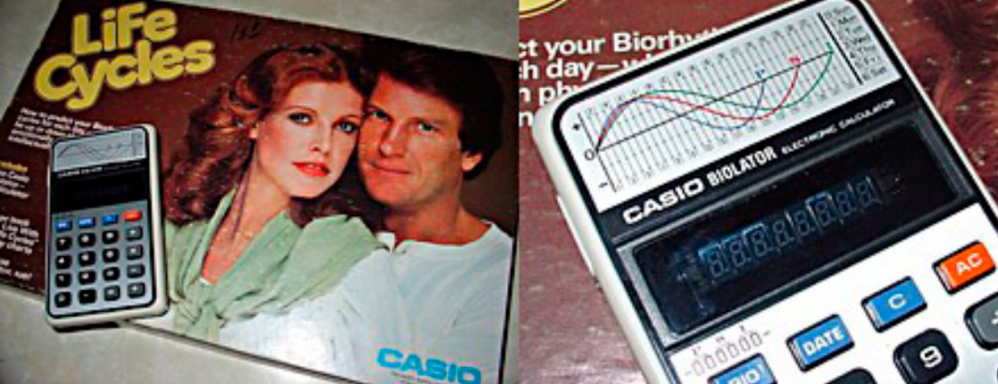 ¿Creéis en todo esto? Pues os diré que la práctica de los biorritmos fue una actividad muy popular en los años 70 del pasado siglo, gracias a una serie de libros de Bernard Gittelson y que el trazar biorritmos para el uso privado se hizo tan popular en los Estados Unidos que en muchas áreas de ocio había incluso «máquinas para hacerlos». También se desarrollaron calculadoras de biorritmos portátiles como una llamada Casio Biolator