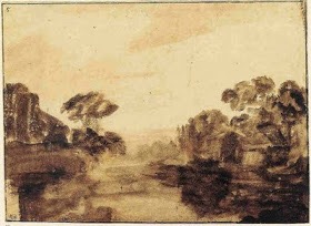 Rembrandt. Río con árboles (h. 1654-56). París, Museo del Louvre. Pincel y aguada marrón. Fuente: http://lineaserpentinata.blogspot.com.es/2011/05/dibujos-de-rembrandt.html?m=0