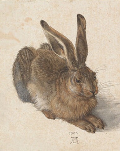 Liebre joven Alberto Durero 1502.Acuarela y Gouanche sobre papel. 25,1 x 22,6 . Museo Albertina. Viena