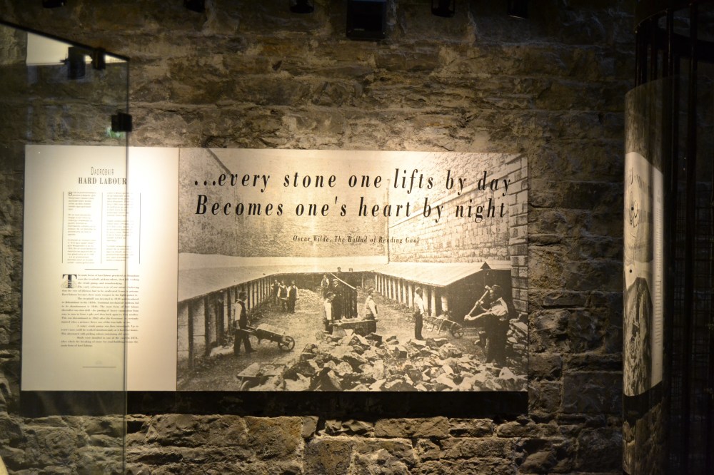 Se inauguró en el año 1.796, como cárcel del condado de Dublín y fue edificada con muros de piedra arenisca, una roca sedimentaria de color variable formada durante muchos años bajo la superficie de océanos, lagos y ríos que tiene al cuarzo como componente principal. Eso aporta a sus muros un brillo y un tono satinado, pero tiene el inconveniente de que esos muros gotean con el mal tiempo (que en Irlanda es continuo) creando una gran humedad. Con este tipo de construcción la salud de los presos encerrados en aquella cárcel se deterioraba con gran facilidad.