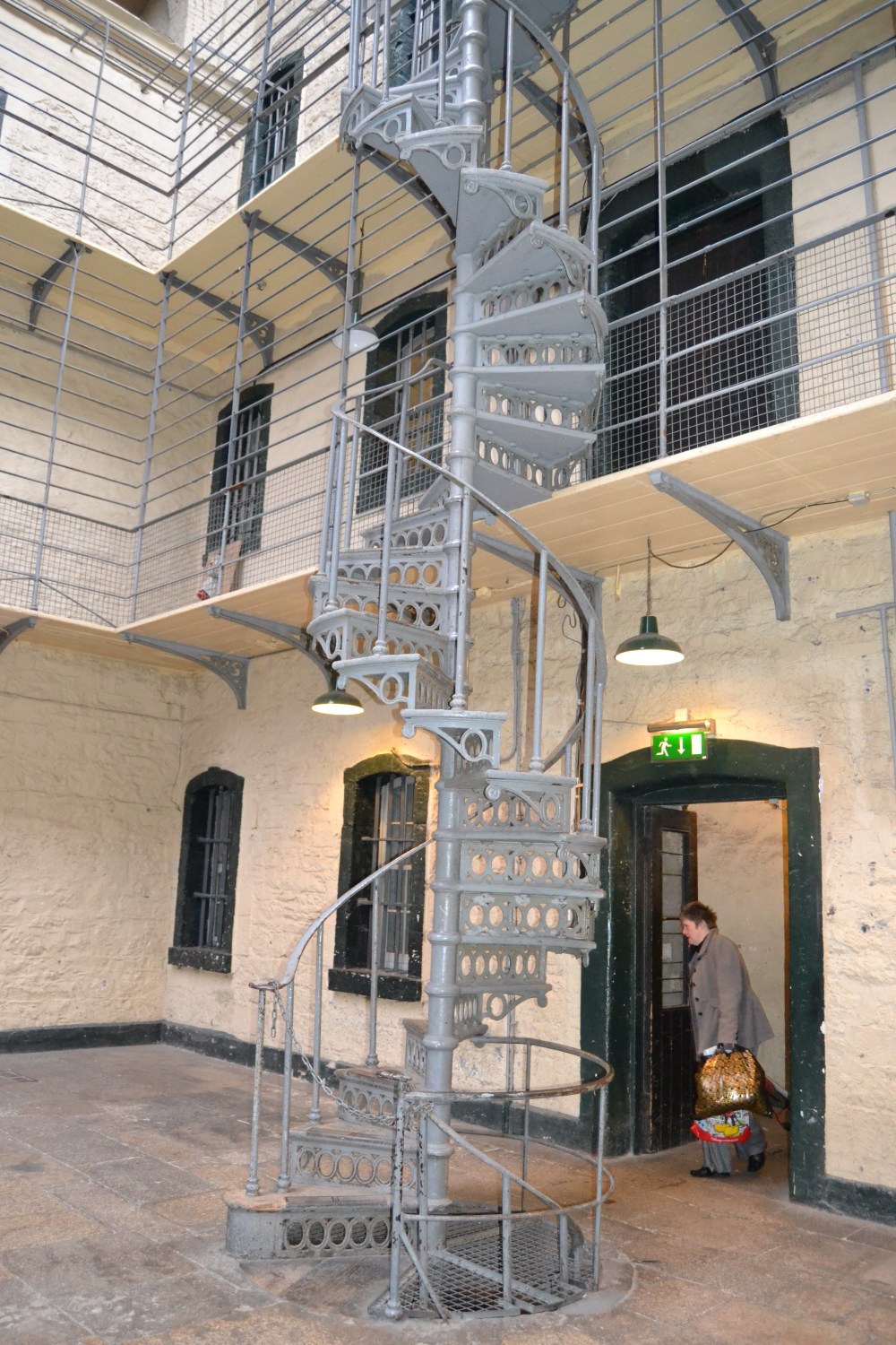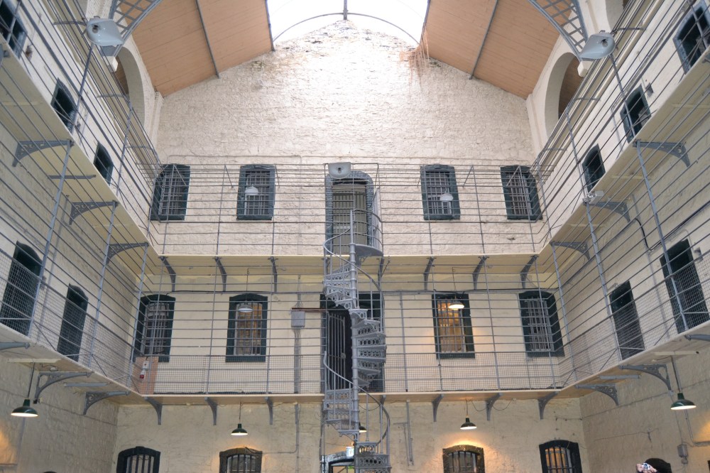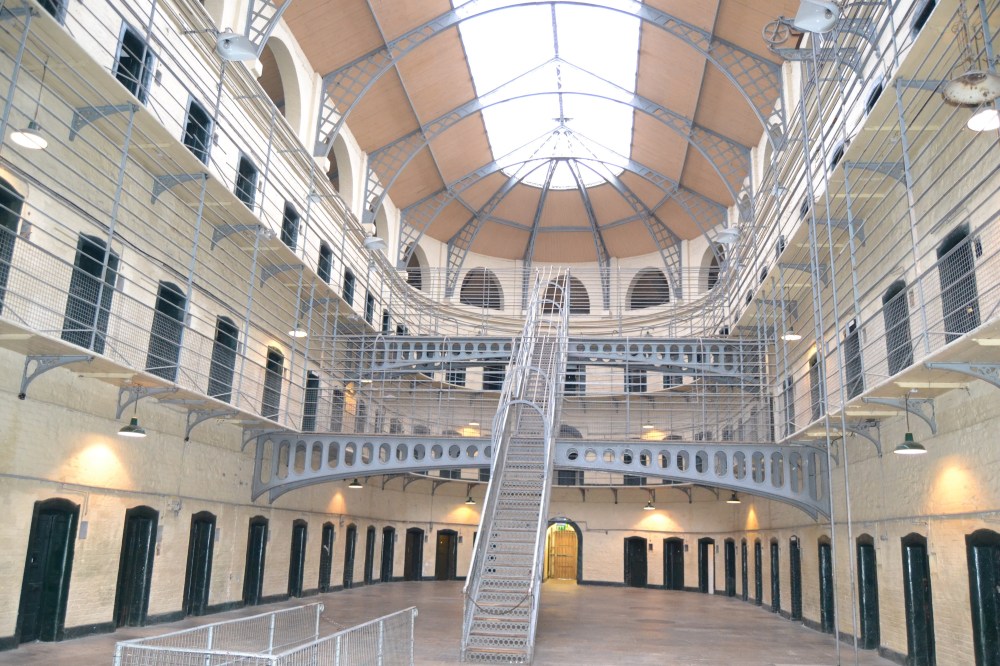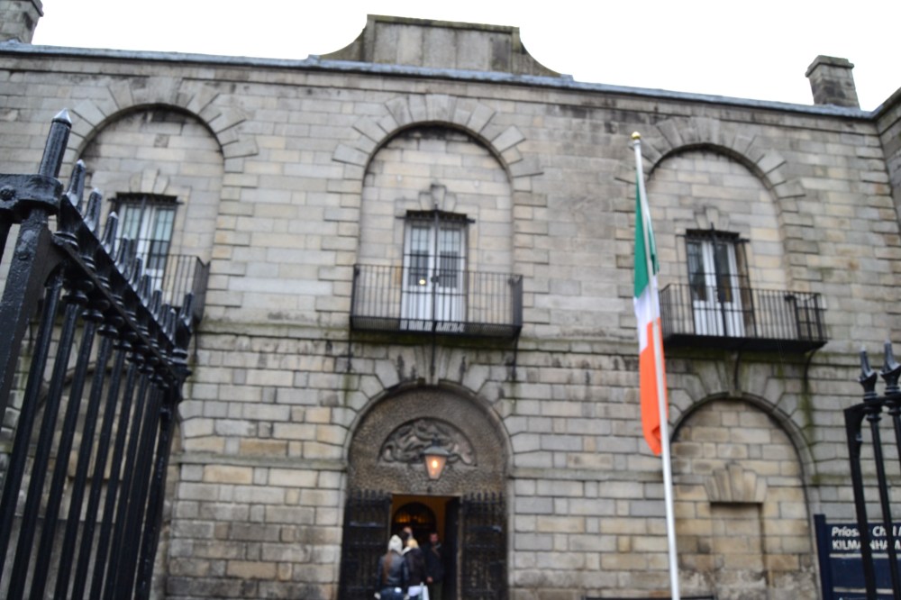 Se inauguró en el año 1.796, como cárcel del condado de Dublín y fue edificada con muros de piedra arenisca, una roca sedimentaria de color variable formada durante muchos años bajo la superficie de océanos, lagos y ríos que tiene al cuarzo como componente principal. Eso aporta a sus muros un brillo y un tono satinado, pero tiene el inconveniente de que esos muros gotean con el mal tiempo (que en Irlanda es continuo) creando una gran humedad. Con este tipo de construcción la salud de los presos encerrados en aquella cárcel se deterioraba con gran facilidad.