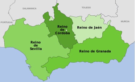 Los cuatro reinos de Andalucía. Fuente: Wikipedia