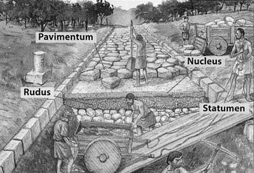 Las calzadas romanas de primer orden se construían con varias capas de firme, pavimento de losa, medianera elevada, vierteaguas en los márgenes y una anchura de seis metros para que los carruajes pudieran cruzarse sin dificultad. Los puentes eran obras de arte de ingeniería y aún hoy todavía se conservan muchos operativos. En estas calzadas, y a caballo, se podían hacer viajes de hasta 70 km diarios.