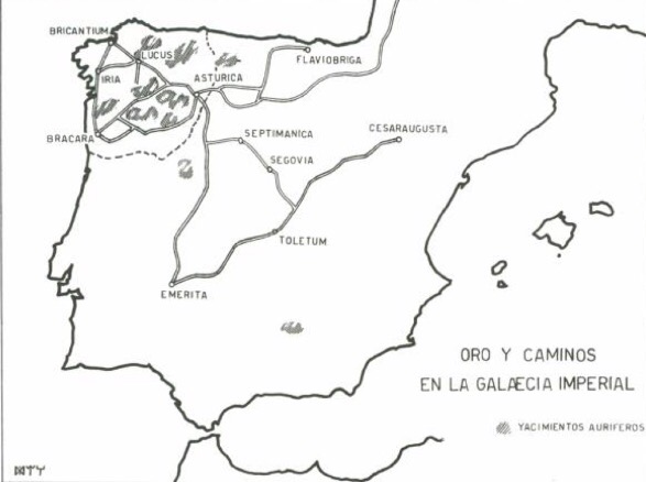 No menciona Gallaecia, quizás porqué era territorio hostil y nunca fue considerada como una propia provincia Romana, sin embargo el testimonio de su presencia, aunque mal conservado, es muy estenso, para proteger las explotaciones mineras de oro, construyeron ciudades amuralladas, la muralla de Lucus (Lugo), es la más famosa pero solo es una muestra, estas ciudades estaban comunicadas por una red muy importante de vías, que aún son utilizadas en la actualidad formando parte del camino de Santiago.