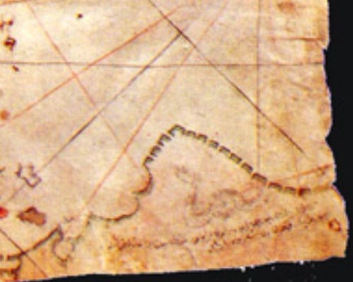 Aquí llegamos a otra parte también muy polémica del mapa ya que muchos investigadores han supuesto que en este trozo se reflejan las costas de la Antártida, lo cual solo sería explicable si admitiésemos que América y la costa de la Antártida fueron explorados en la antigüedad (ver vídeo de introducción) y que los cartógrafos antiguos dispusieron de mapas detallados de este continente, pero el hielo de la Antártida se remonta a unos 15000 años. ¿Qué civilizaciones podrían existir en la época del hombre de Cromagnon? La explicación es mucho más sencilla