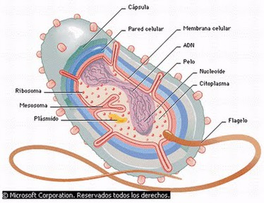Sin ese compartimento especializado donde se aloja el sistema genético llamado «núcleo celular«, las bacterias, seres unicelulares de tamaño entre los 0,2 y los 50 μm (1 micrón μm = 0,001 milímetros) llevan su ADN en un área del citoplasma llamado «nucleoide» con tres capas protectoras que rodean al citoplasma que lo conteniene y unos flagelos para moverse.