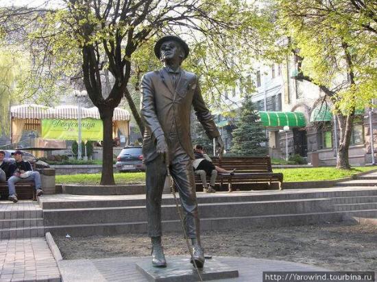 El monumento a Mikhail Panikovsky, se sitúa al lado de la casa nº 6 en la calle Prorizna. Se trata de un homenaje al famoso protagonista de la novela ‘El Becerro de Oro’ escrita por Ilf and Petrov, que es un libro mordaz, lleno de situaciones delirantes, donde se nos presentan los vicios del sistema soviético de los años 30. Panikovsky es el ‘Harpo Marx‘ de la literatura Soviética y es un personaje que trata de convertirse en millonario en la Rusia de Stalin. El monumento nos lo representa como una persona que con un bastón, sombrero y gafas de sol, va caminando por la calle, con su mano izquierda en el bolsillo y con su pierna zurda tratando de esconder una moneda del suelo para que nadie la coja.