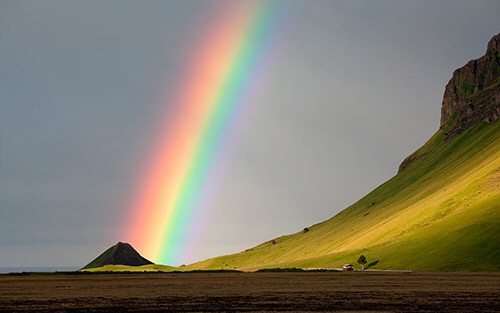 En una exhibición de belleza cromática, la paleta de un arco iris nos muestra el espectro de forma ordenada: rojo, anaranjado, amarillo, verde, azul, añil y violeta gracias a la refracción y reflexión de los rayos solares tras las gotas de agua y la percepción de las formas, la profundidad y el claroscuro está estrechamente ligada a la percepción de los colores.