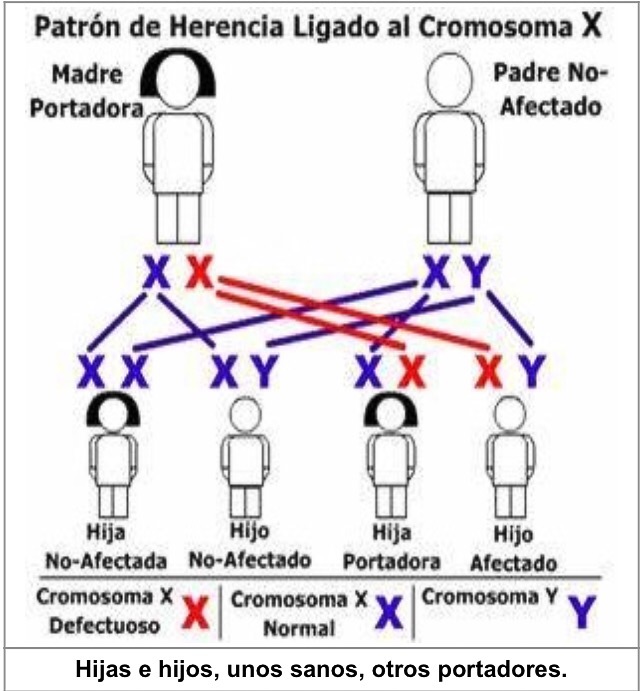 Caso 3.- Madre portadora y padre normal, Estadísticamente, este es el caso más habitual