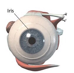 Se trata de una membrana circular y contráctil situada entre la córnea y el cristalino con fibras musculares circulares que causan la constricción de esa pupila y fibras radiales para dilatarla, regulando la cantidad de luz que entra en el ojo. Este órgano mide entre 12 y 13 milímetros de diámetro y tiene un espesor de 0,3 milímetros.