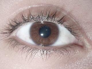 En cambio los ojos con iris de color marrón, café o castaño tienen grandes cantidades de melanina en su parte anterior que sirven para absorber las longitudes de ondas más cortas (azul y violeta) dejando pasar las más largas (rojo y amarillo) pero entre un azul intenso y un marrón oscuro hay muchas variedades cromáticas y el color final de un iris puede ser un continuo que va desde los tonos más claros de azul hasta los más oscuros y casi negros pasando por un intervalo que cubre los tonos marrón y verde-avellana hasta un azul grisáceo.
