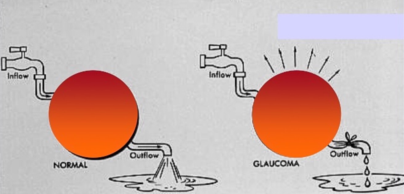 Se trata pues, de un líquido que sale de la cámara anterior a través del ángulo abierto por donde se unen la córnea y el iris y que está fluyendo continuamente. Se elimina a través de una red o malla esponjosa, parecida a un colador a la que los médicos llaman coloquialmente «la alcantarilla de desagüe» y este líquido debe encontrar una cierta resistencia para salir del ojo a nivel de ese ángulo para que el mismo mantenga su dureza .