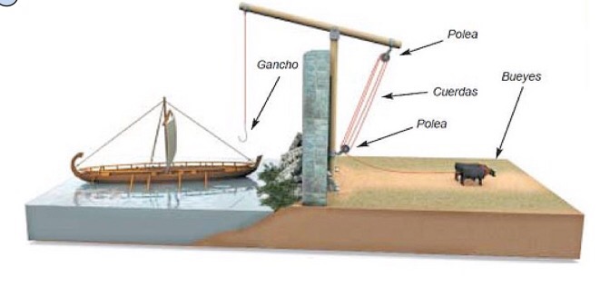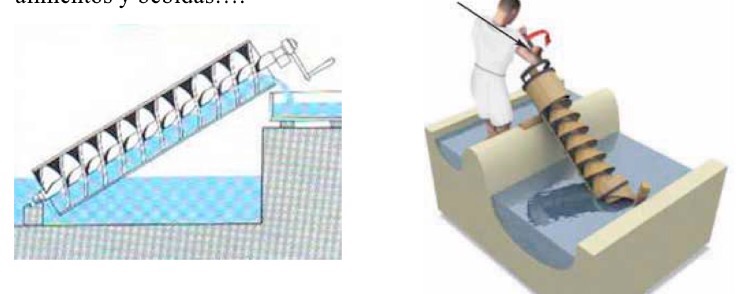 El tornillo de Arquímedes era una pieza clave para estas construcciones. Se trata de una máquina gravimétrica helicoidal basada en un tornillo que se hace girar dentro de un cilindro hueco, situado sobre un plano inclinado. Esta máquina permite elevar el cuerpo o fluido que se encuentre por debajo del eje de giro de este tornillo.