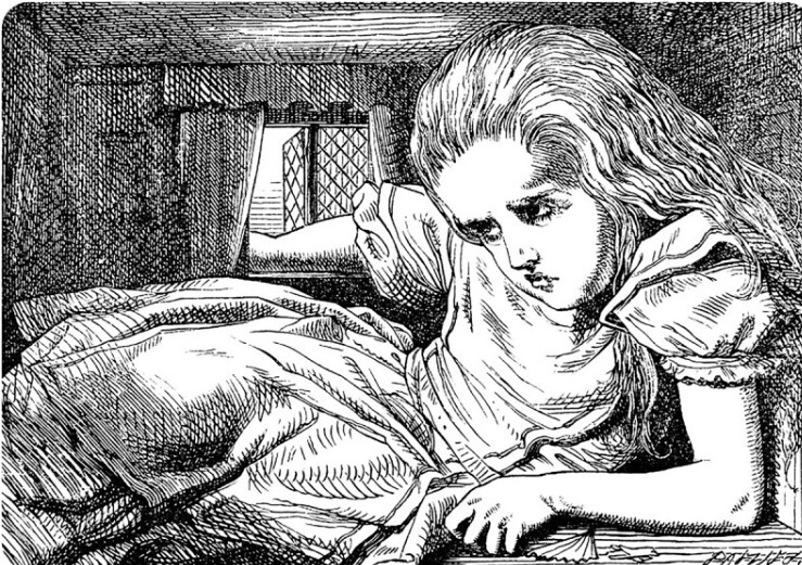 En esta de 1865 Alice experimenta la macrosomatognosia total de su cuerpo