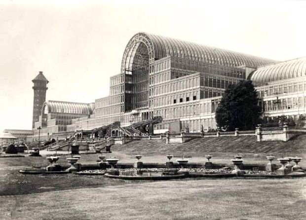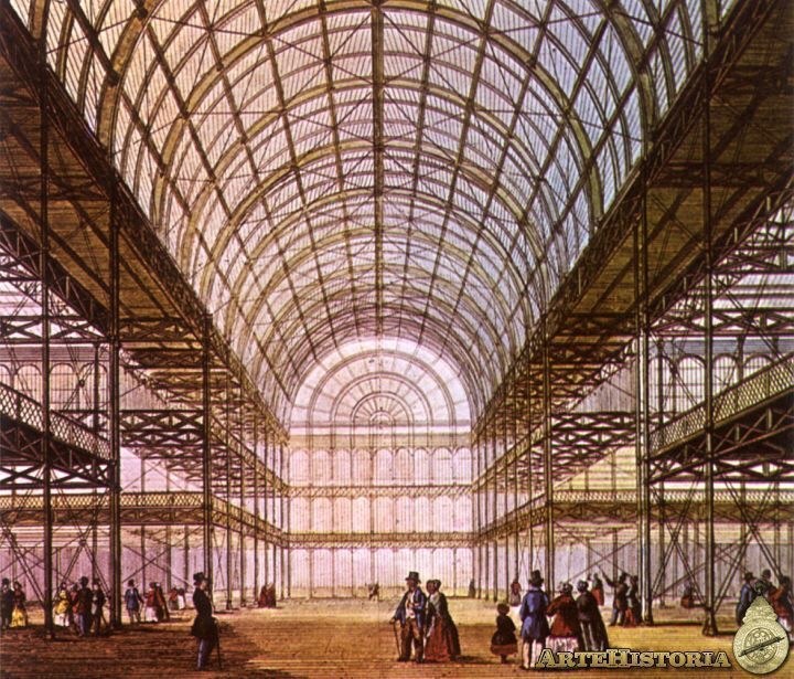 El hierro como material de construcción empezó a usarse en las grandes edificaciones en la segunda mitad del siglo XIX unido a las edificaciones de las grandes Exposiciones Universales y se convirtió en el armazón visible de los nuevos edificios de la modernidad. La primera gran obra con este material se hizo en la primera Exposición Universal celebrada en Londres en 1851 y fue el Palacio de Cristal, un edificio de hierro, madera y vidrio proyectado por Joseph Paxton (1803-1865)