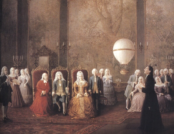 Demostración del Passarola de Gusmão ante la corte del rey Juan V Fuente: AHEA