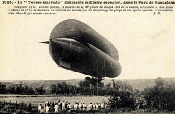En España en 1902 Leonardo Torres Quevedo presentó, tanto en la Academia de Ciencias de Madrid como en la Academia de Ciencias de París, uno de sus primeros trabajos en el mundo de los dirigibles; eran modelos controlados a distancia y sin piloto. Gracias a estos trabajos, el Servicio de Aerostación Militar del Ejército de España construyó el primer dirigible español que fue precisamente llamado España.