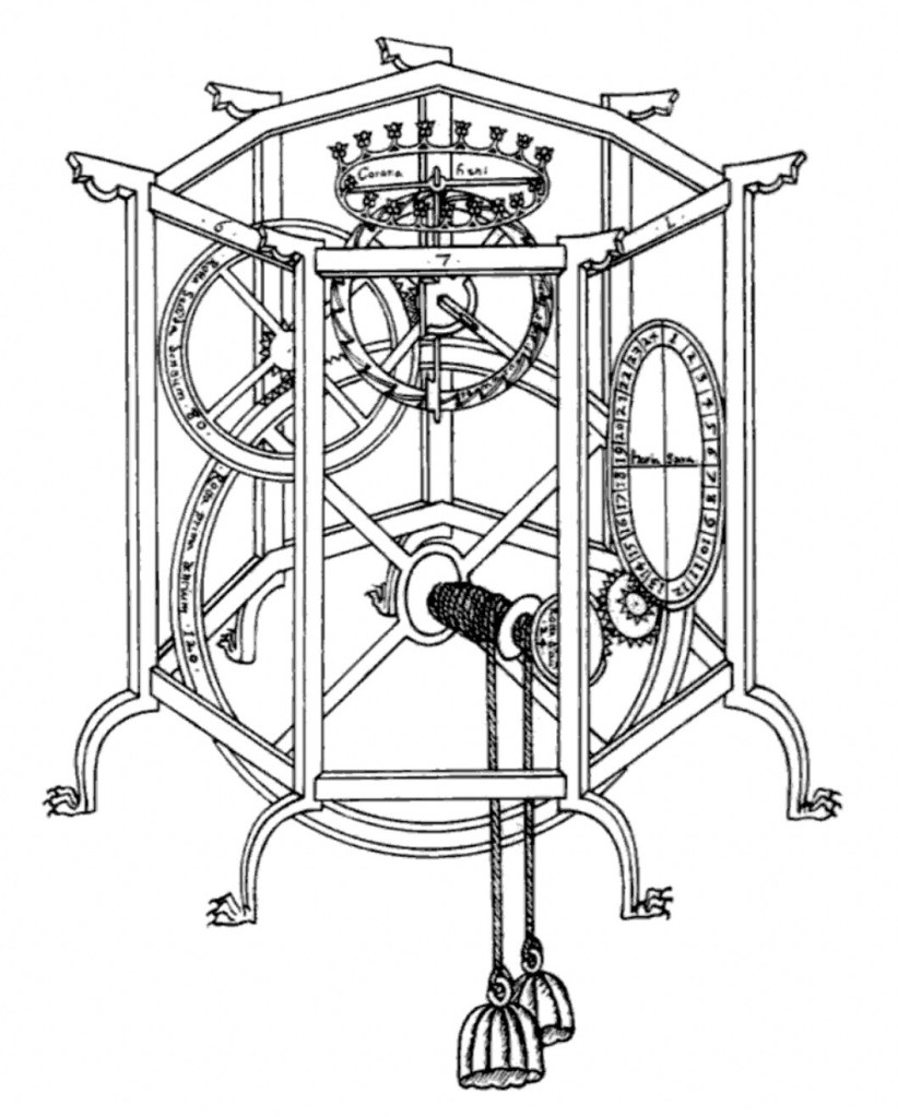 El emperador se detuvo en Pavía y en la biblioteca del castillo de aquella ciudad admiró un complicado y vetusto aparato que había sido, en su tiempo, una joya de la mecánica medieval europea. Sé trataba del Astrarium, un complejo reloj astronómico construido en algún lugar de Italia, Francia o Alemania entre los años 1348 y 1364 por un médico y relojero llamado Giovanni Dondi dell’Orologio. Aquel reloj era considerado como el instrumento científico de mayor complejidad existente hasta el momento, ya que se trataba de un artefacto de siete caras que movido por un complicado mecanismo representaba en cada momento los movimientos de los planetas en el espacio, según las teorías de Ptolomeo. En sus 107 partes móviles se mostraban las posiciones del sol, la luna y los cinco planetas conocidos hasta entonces así como los días de fiestas religiosas.