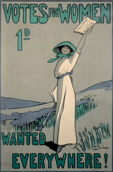 Cartel publicitario del periódico semanal sufragista Votes for Women, 1909