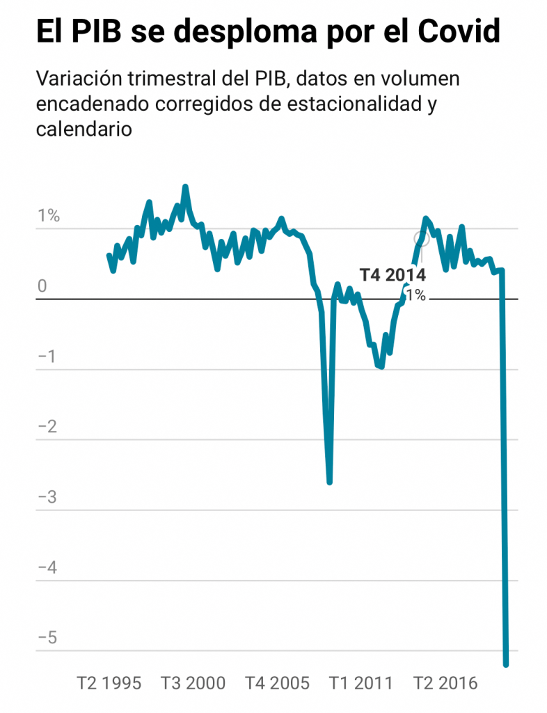 Hoy hemos conocido una caída del PIB español de hasta un 4,1%, un descenso similar al que registró la economía española en los nueve meses posteriores a la quiebra de Lehman Brothers y eso a pesar de que los datos del INE recogen la evolución económica a lo largo de todo el trimestre, mientras que la pandemia solo afectó a las últimas semanas de marzo. Eso significa que los datos del segundo trimestre serán mucho peores.