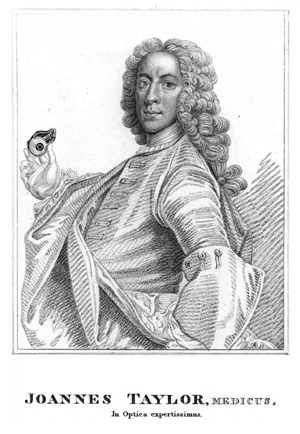 Este espantoso personaje había nacido en 1703 en Norwich y pronto decidió establecerse como médico ambulante presumiendo siempre de estar al tanto de los últimos descubrimientos en la ciencia médica oftalmológica. Con un llamativo carruaje decorado con ojos ejerció su oficio por toda Europa, de Portugal a Rusia, llegando incluso hasta Persia, y se ofrecía a operar a la gente de cataratas y estrabismo. El ‘matasanosTaylor fue objeto de caricaturas y sátiras teatrales, como la de la imagen siguiente sacada de la referencia a una ópera inglesa anónima de título ‘The Operator