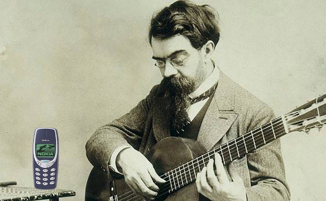 En la imagen de portada vemos al gran guitarrista español Francisco Tárrega junto con el primer móvil de Nokia que hizo famosa su melodía, porque ambos están unidos por aquella musiquilla que hacia reconocibles a los móviles de la marca finlandesa y que se denominada «Melodía Nokia» (Nokia Tune).