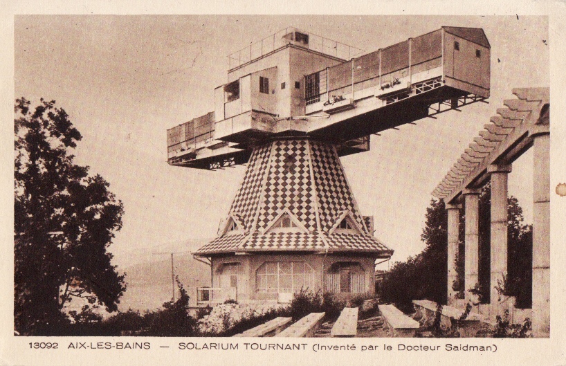 Para seguir con sus investigaciones el doctor Jean Saidman inventó un «edificio cinético» al que denominó «solárium »El mismo se movería- igual que los girasoles- para buscar al sol y seguir su movimiento con la finalidad de conseguir el máximo de radiación solar para el tratamiento de pacientes con tuberculosis, enfermedades óseas y reumatismo. Eligió la ciudad de Aix-les-Bains en el este de Francia para construirlo, porque aquel lugar ya era célebre por sus aguas termales y allí viajaban muchas personas para ser tratadas de problemas óseos y reumáticos.