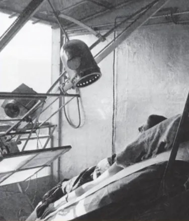 Cada habitación estaba equipada con una cama basculante que permitía colocar a los pacientes verticalmente para recibir los rayos del sol. En aquellas camas reclinables se colocaba a los mismos bajo unas lentes de 1,6 m2 que- según afirmaba el Dr. Saidman, permitían “ captar cantidades considerables de rayos ultravioleta invisibles, con una potencia luminosa equivalente a más de 5 millones de velas, y una energía calorífica muy apreciable«. Y no solo eso, para hacer más efectivo el tratamiento, y en los días lluviosos o nublados, cuando no era posible tomar el sol se recurrían a fuentes de luz artificiales (infrarroja y ultravioleta) mediante lámparas de arco polimetálico y lámparas de infrarrojos.