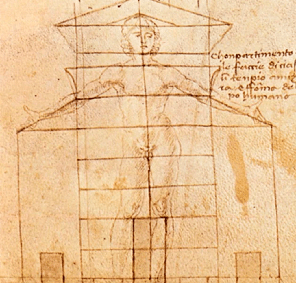 El trabajo de Vitruvio contenía un desafío que él no pudo resistir. «Para que cualquier edificio sea hermoso», había escrito el viejo arquitecto: «debe tener una simetría y proporciones perfectas, como las que se encuentran en la naturaleza y dado que el objeto más perfecto de la naturaleza es el hombre, un edificio perfecto debía ser proporcionado como el cuerpo humano».