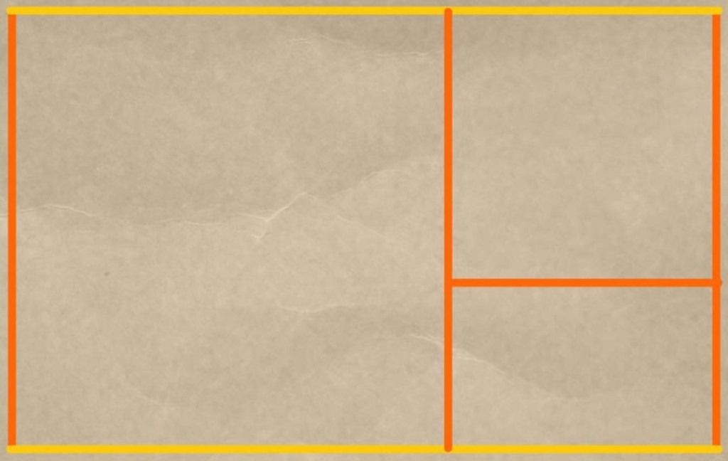 Si dentro de un rectángulo se traza un cuadrado, ese cuadrado corresponde al valor 1, mientras que el rectángulo pequeño sobrante será 0.618 y juntos forman el número áureo.
